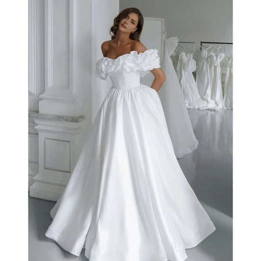 Elegant Satin Wedding Dresses Women 2025 Off-Shoulder Long Prom Dress Pleat Chic Bridal Gowns vestido de novia Back Lace Up