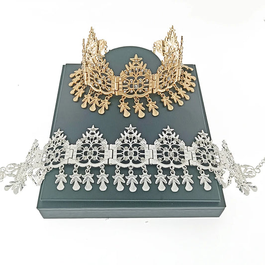 Algerian Bridal Hair Jewelry Metal Water Drop Crystal Hair Chain Star Moon Shape Arab Lady Prom Headgear Gold Color Silver Color