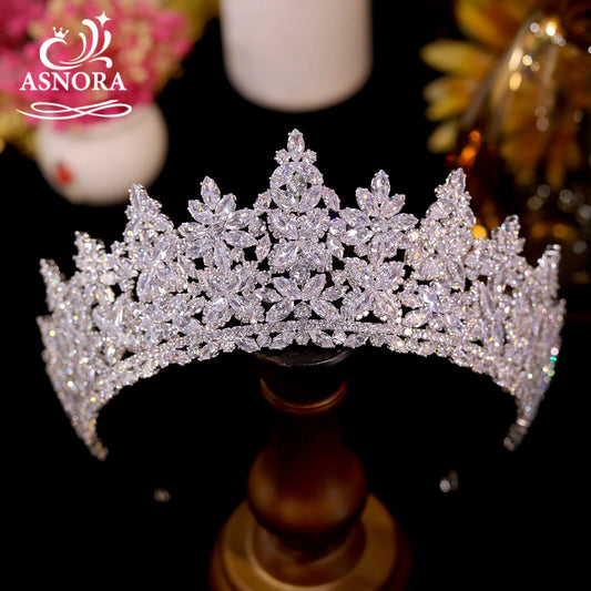 ASNORA Elegant Full Zircon Tiaras Crowns for Brides Royal Wedding Hairbands Crystal Wedding Hair Accessory Wedding Gifts