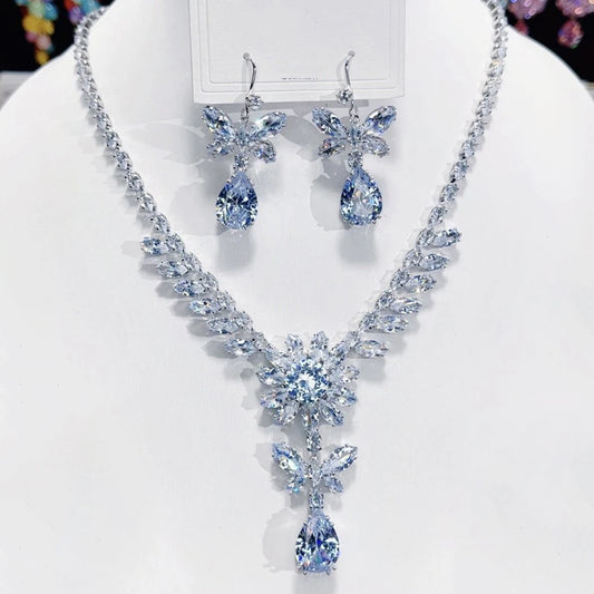3pcs Baroque Light Luxury Cubic Zirconia Jewelry Set Dewdrop Necklace Earrings Plated Stackable Bride's Wedding Jewelry