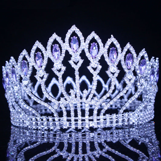 Luxury Elegant Purple Crystal Bridal Accessories Perfect Birthday Gift Shooting Performance Festival Fashion Crown Necklace Set
