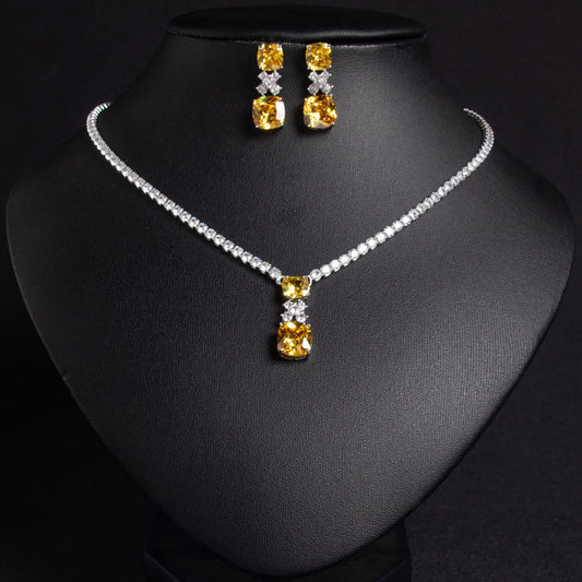Luxury Wedding Jewelry Set For Brides Women Necklace And Earrings Set Cubic Zirconia Party Prom Choker Pendant Necklace Gifts