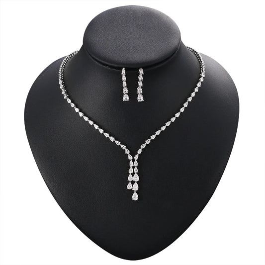 WEIMANJINGDIAN Brand New Arrival High Quality Teardrop Cubic Zirconia CZ Necklace and Earring Elegant Wedding Bridal Jewelry Set