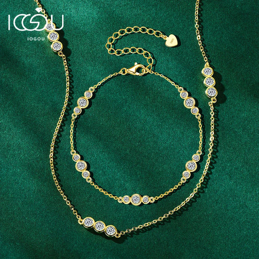 IOGOU 2025 D Moissanite Necklace And Bracelet Set 100% 925 Silver Gold Plated Jewelry Sets for Women Gifts Certified Lab Diamond
