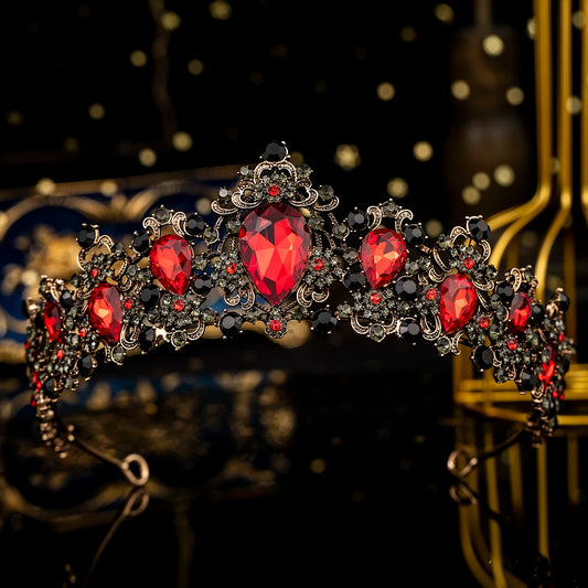 Red Halloween Baroque Rhinestone Classic Crown Luxury Gothic Tiara Headdress Party Cosplay Hair band For Women