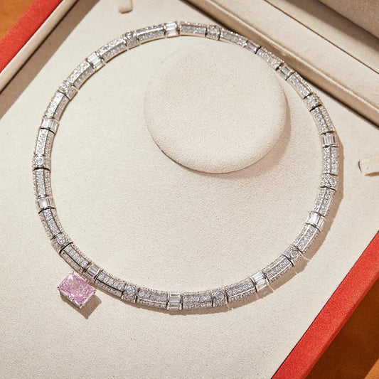 Luxury Silver Color Rainbow Colorful Cubic Zirconia Necklace for Women Multicolor Wedding Necklace Vintage Evening Party Jewelry