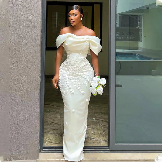Off Shoulder Satin Wedding Dress – Modern Mermaid Bridal Gown with Side Slit & Train | Maison Bridal