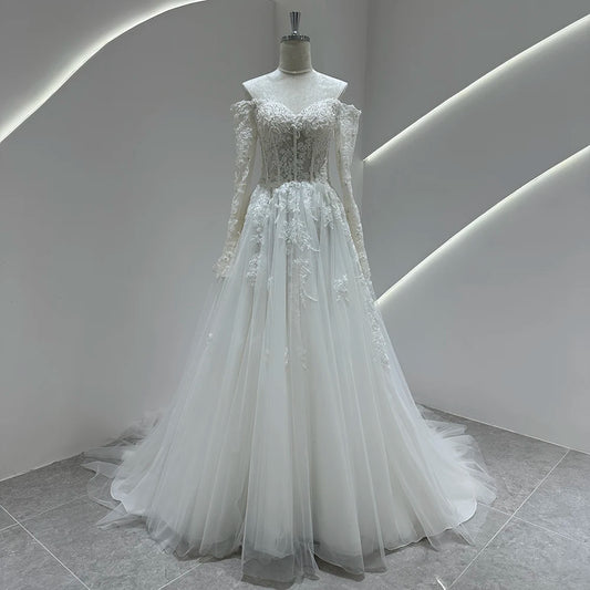 Long Sleeve Wedding Dress 2025 Sweetheart Appliques Bride Ball Gown Royal Train customized SwanSarah AS141 Vestido De Novia
