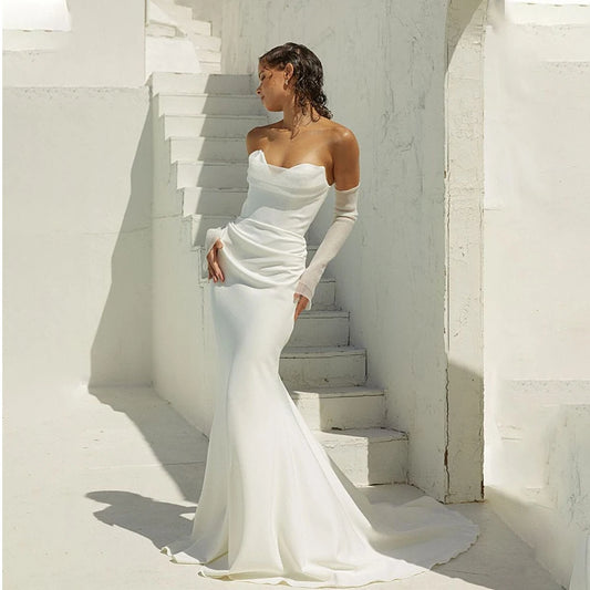 SSYTENS Mermaid Wedding Dresses Strapless Floor Length Satin Wedding Gowns Lace Long Boho Beach Bridal Prom Dresses Customized