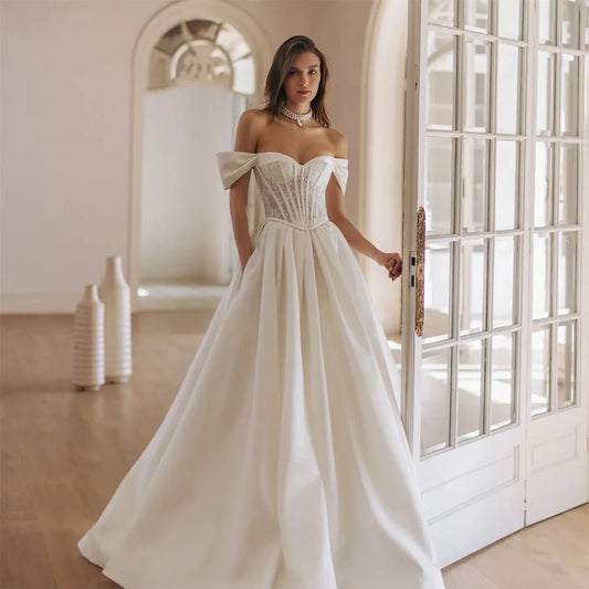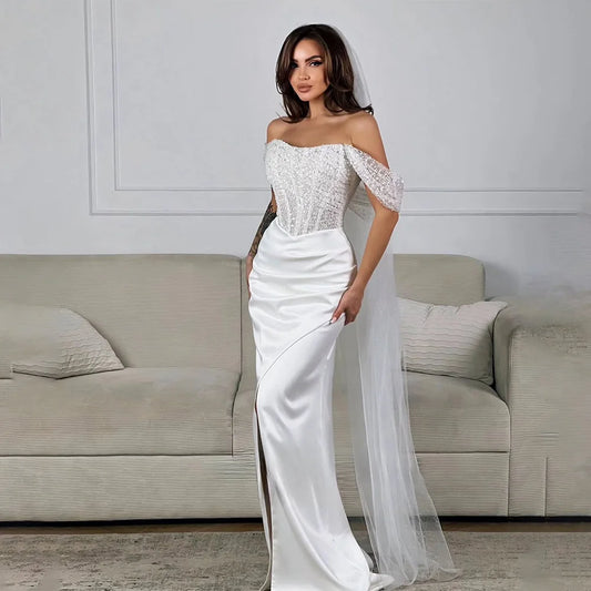 Customized Off-Shoulder Satin Wedding Gown Women Elegant Mermaid Bridal Dress 2025 Sequins Beading Corset Wedding Party Dress