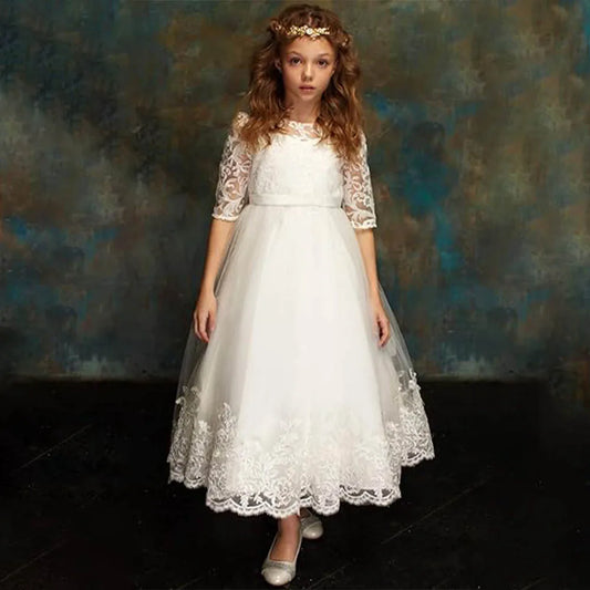 Custom Made Half Sleeves Lace Applique Flower Girl Dresses