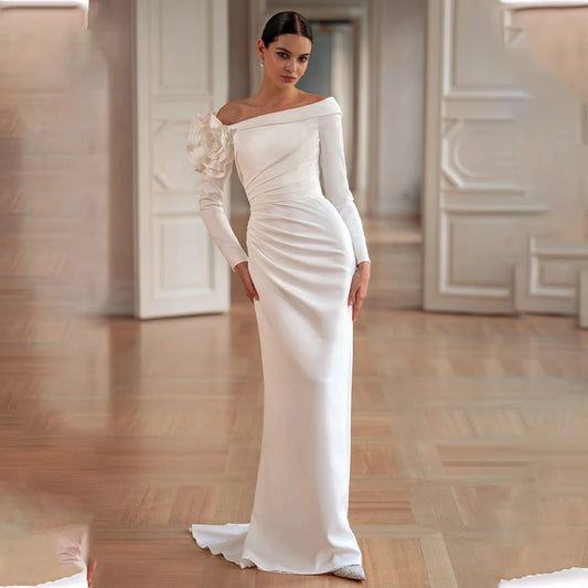 Elegant Off The Shoulder Satin Mermaid Wedding Dresses Flower Custom Made Bridal Grown 2025 Vestido De Noival