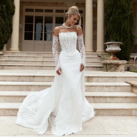 Modern Sweethart Lace Applique Sheath/Mermaid Wedding Dresses With Long Scalf Custom Made 2026 Vestido De Noival