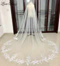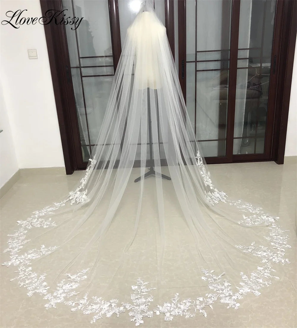 1 Tier Bridal Veil Long Wedding Veil With Comb Lace Edge Floral Appliques White Ivory Elegant Cathedral Veil for Bride 300cm