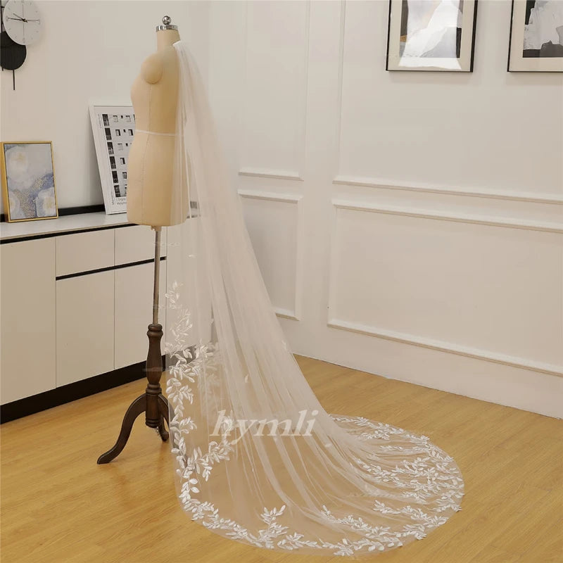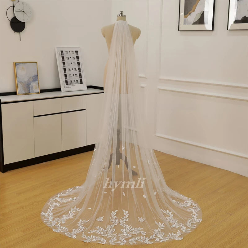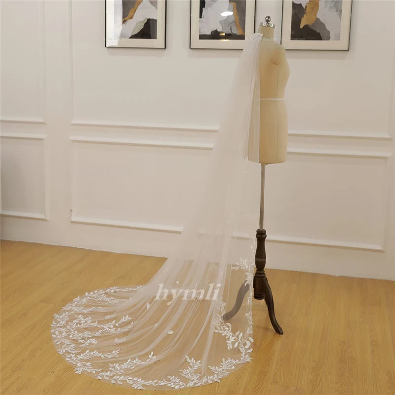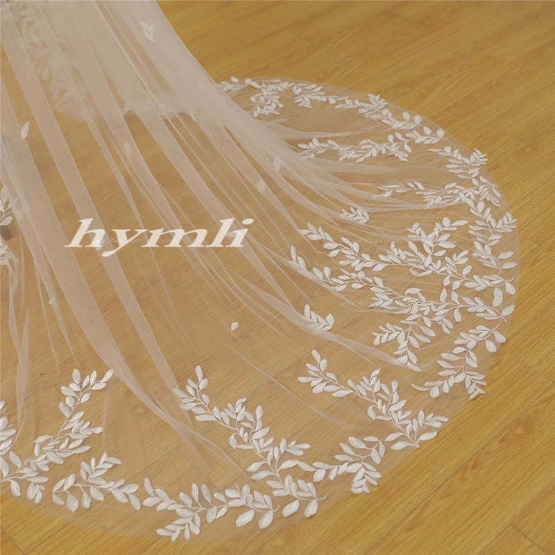1 Tier Cathedral / Chapel Length Bridal Veil Leaf Lace Wedding Veil Metal Comb