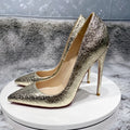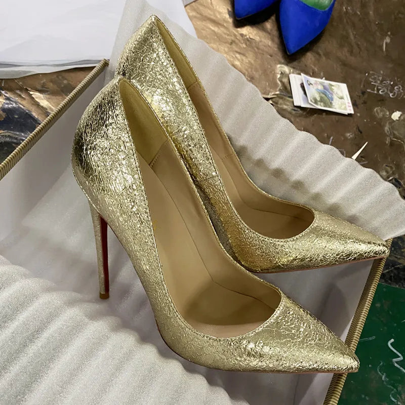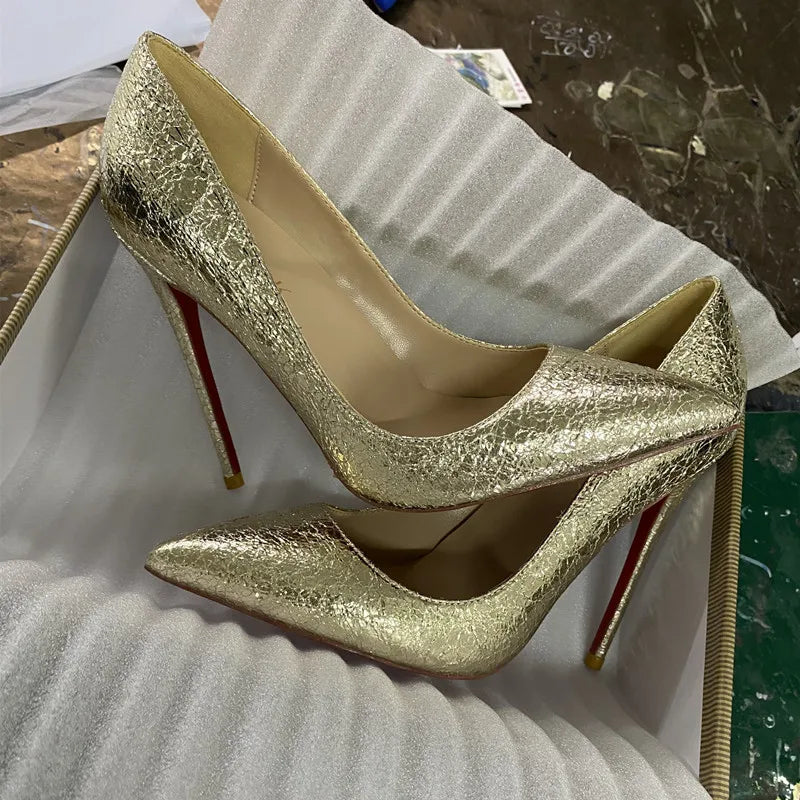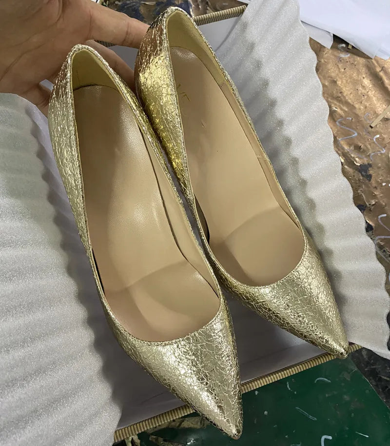 12cm Gold cracked high heels Narrow heel shoes, ankle buckle, fashion shoes, champagne, gold, quartz leather, sexy, banquet shoe