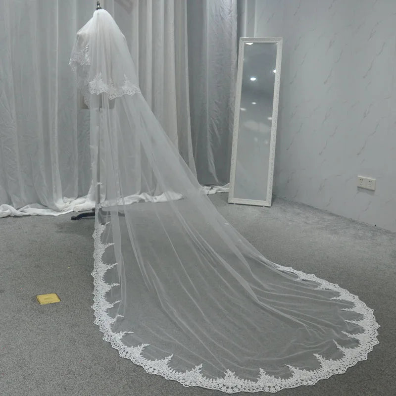 2 Layers Bridal Wedding Veils With Comb 75 CM Short Elbow Length Applique Lace Edge