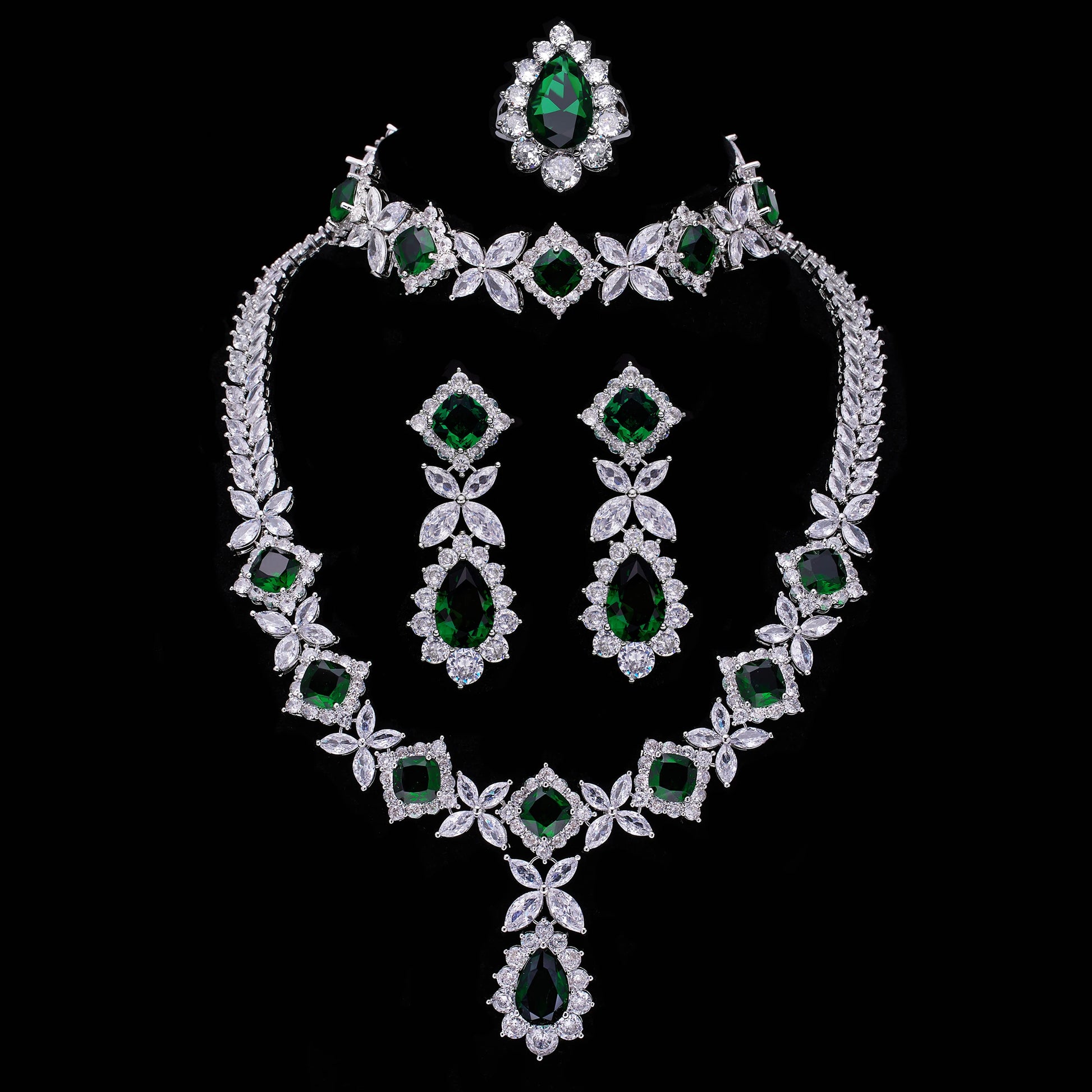 2024 Hot selling 4-piece cubic zirconia bridal jewelry set, Dubai Nigeria crystal wedding jewelry set
