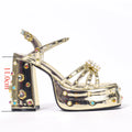 2024 Summer Style Hollow One Word Buckle Rhinestone Sandals High Heel Open Toe Thick Heel Waterproof Platform High Heels