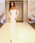 Off-Shoulder Lace Sleeve Satin Wedding Dress – Elegant Mermaid Bridal Gown | Maison Bridal