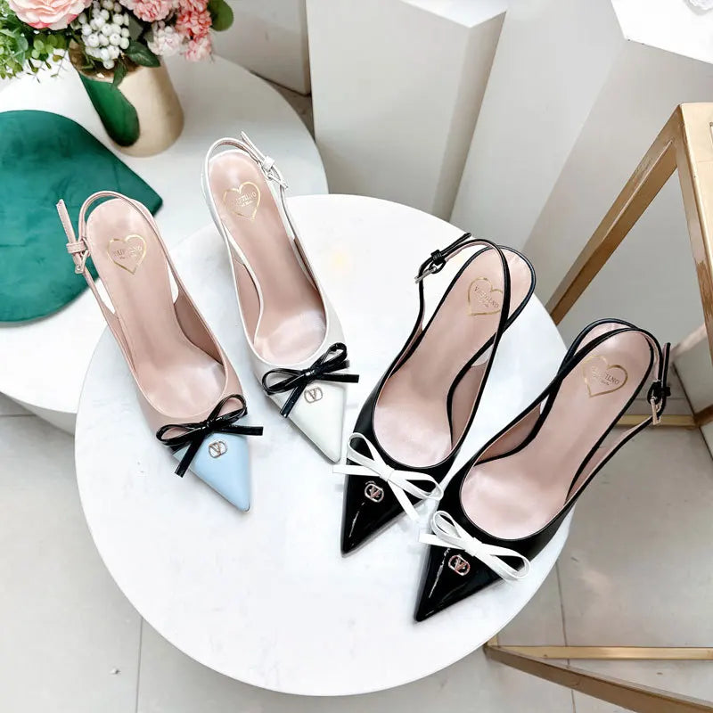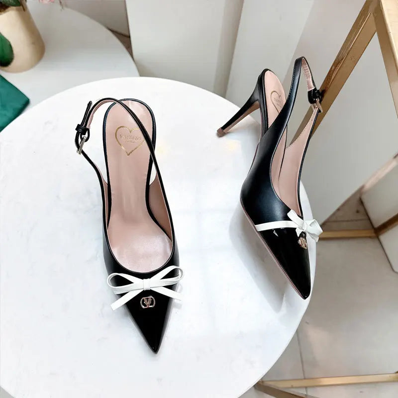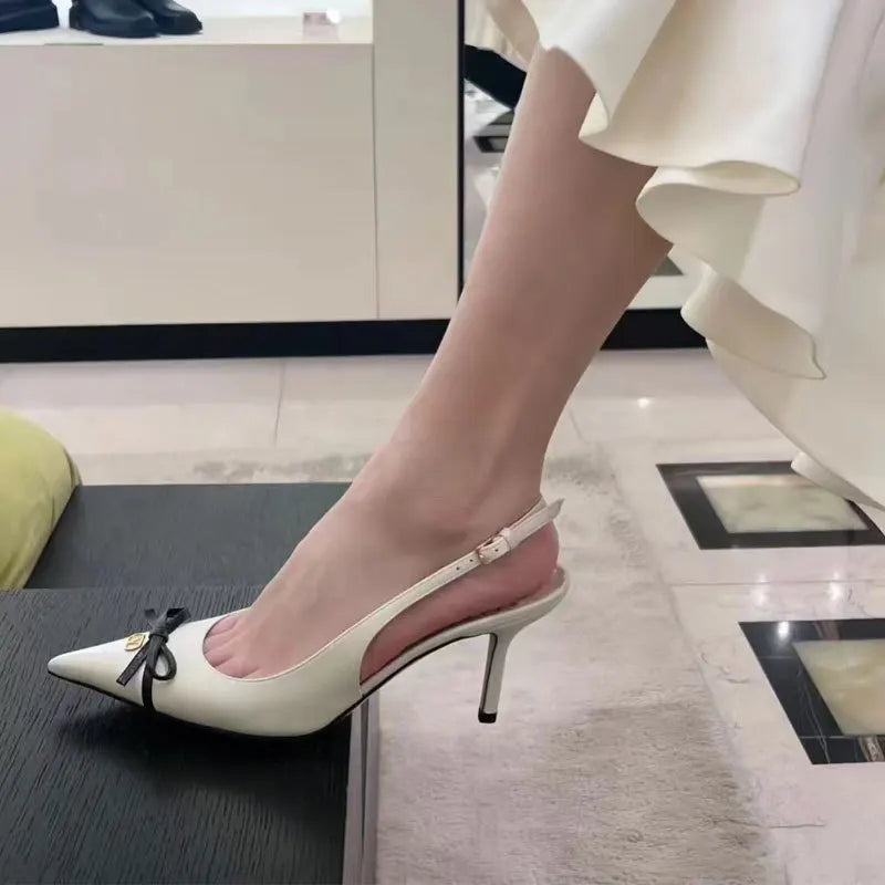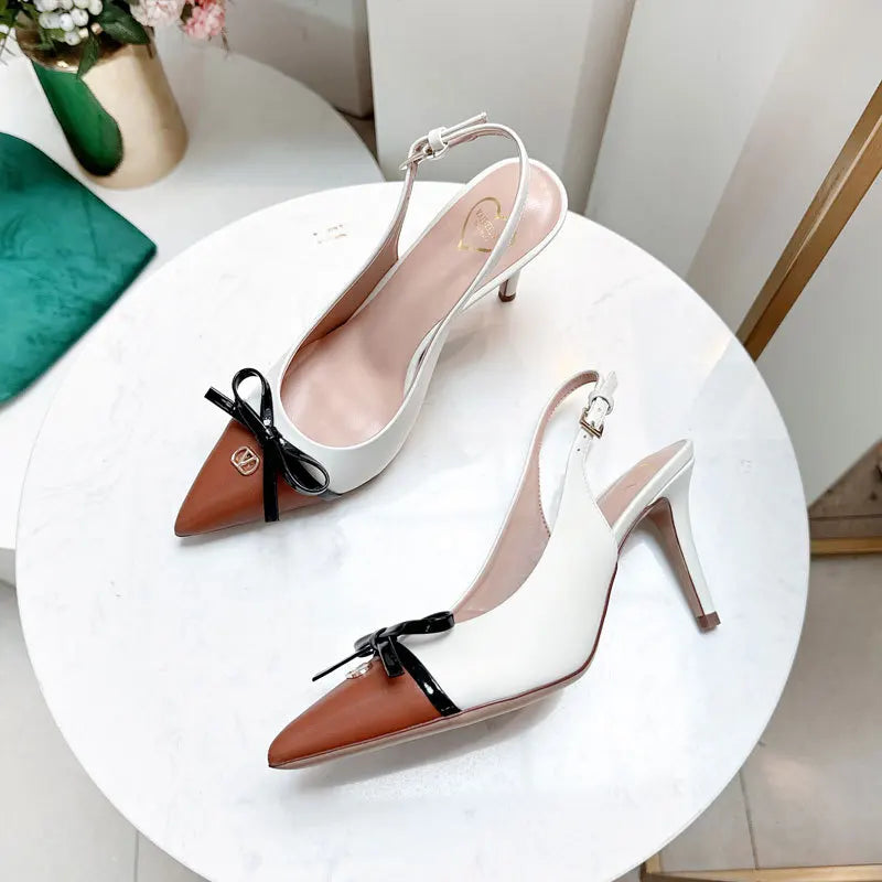 2025 Summer New Pointed High Heel Sandals Butterfly Knot Stiletto Sandals Color blocked Sandals