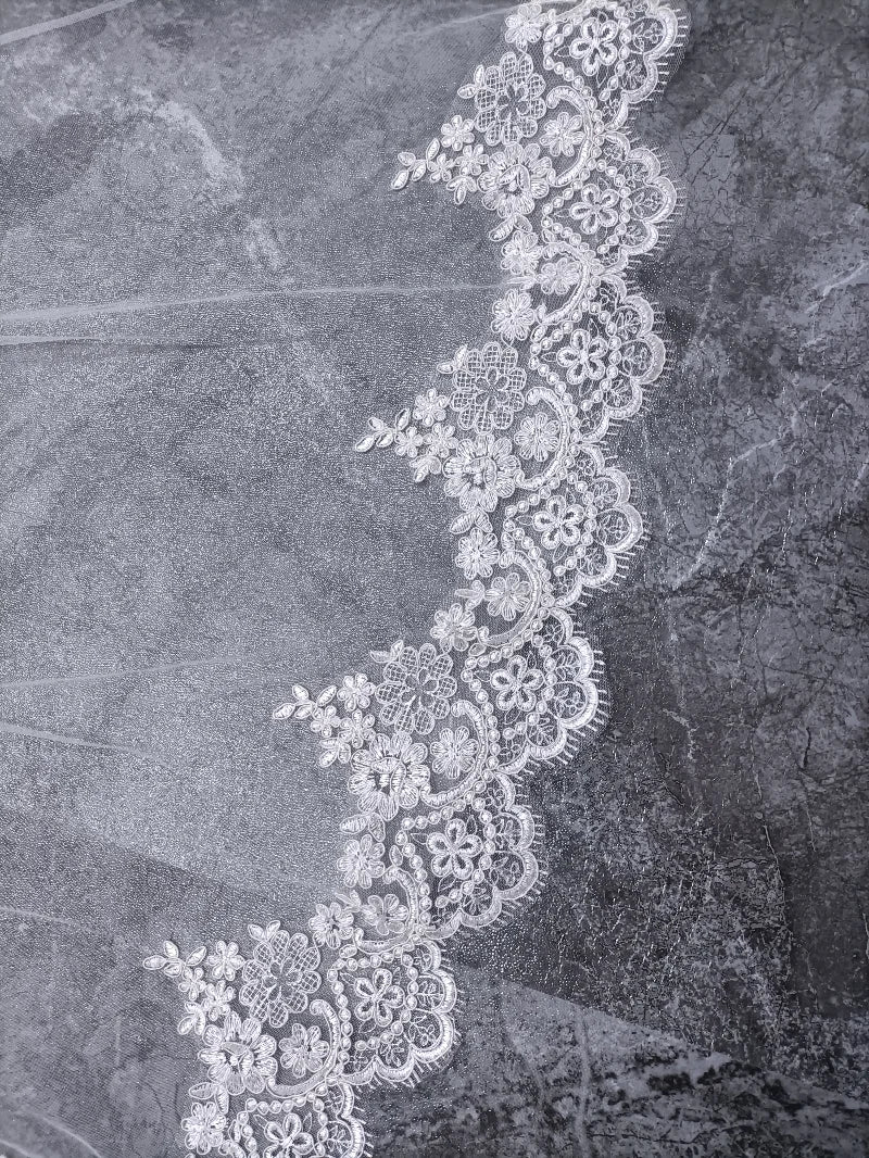 3/4/5-meter-long full-edge lace wedding veil, a layer of tulle bridal veil with comb for weddings and important occasions / wedd