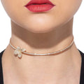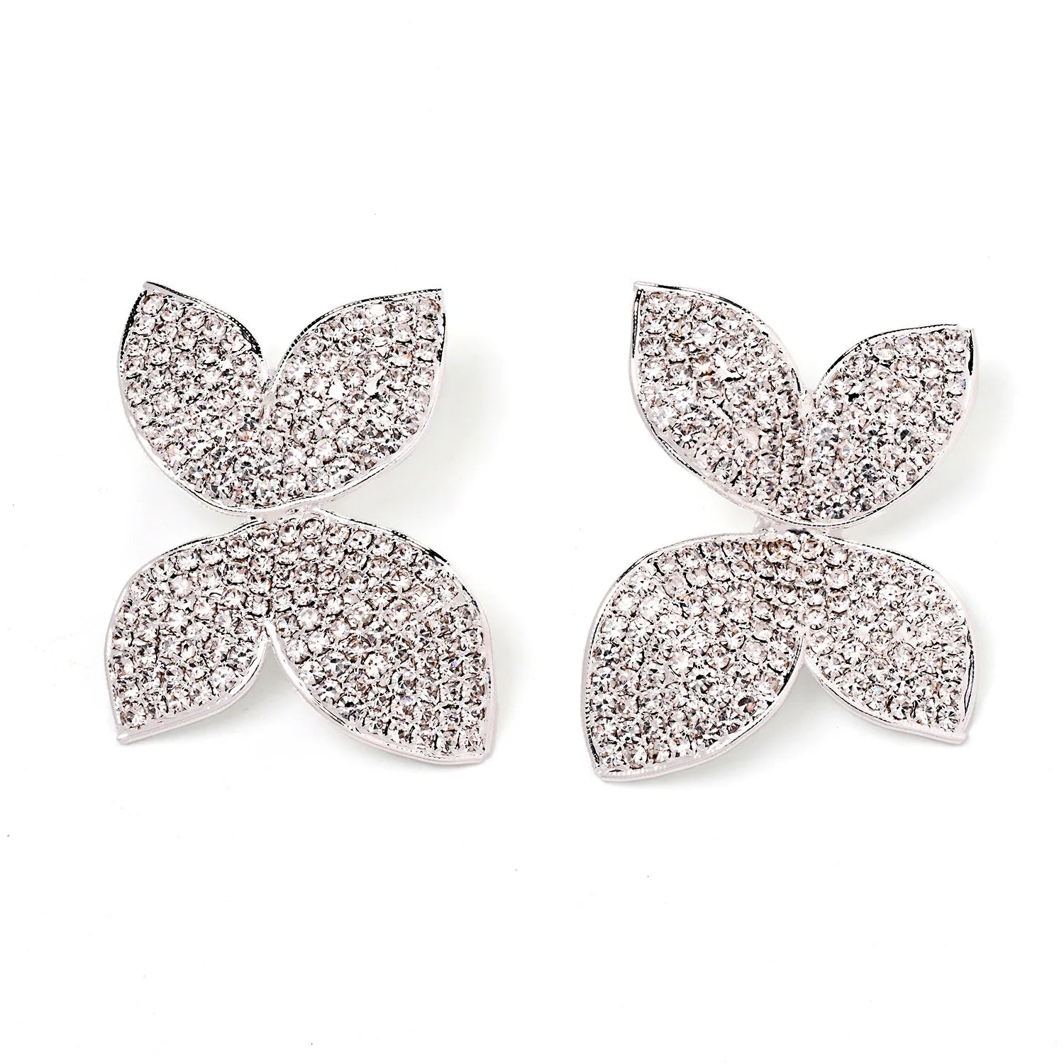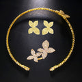 4 Piece Set Butterfly Flower Collar Necklace Earring Ring Set Full Rhinestone Women Bridal Open Choker for Wedding Jewelry Sets