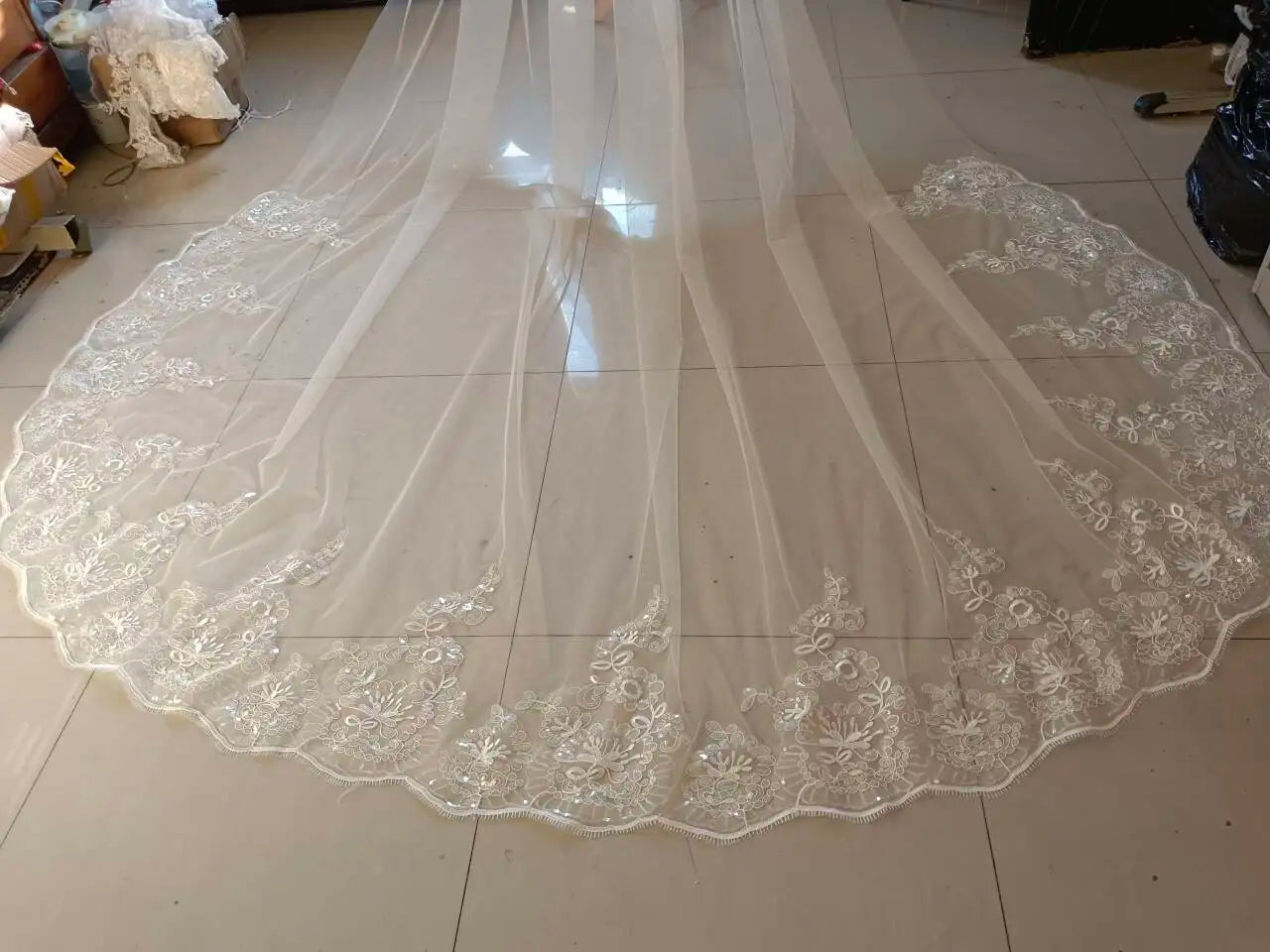5m/4m/3m long white wedding veil ivory Cathedral bridal veil with lace edge with comb wedding accessories bride wedding veils