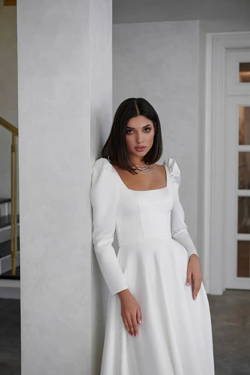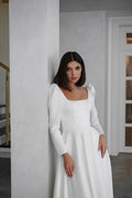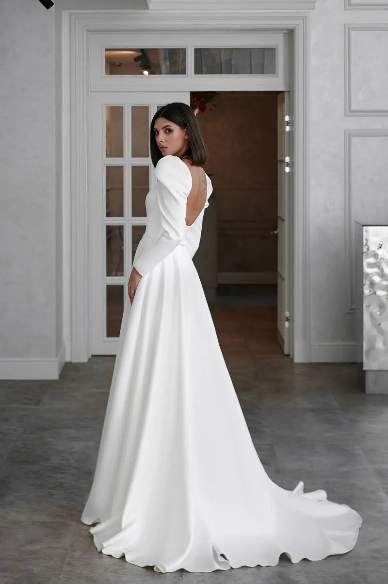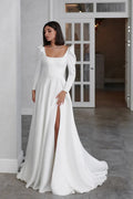A-Line Wedding Dress Long Sleeve Square Collar Side Slit Simple Satin Open Back Beach Robe De Mariee Custom Made To Measures