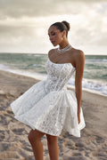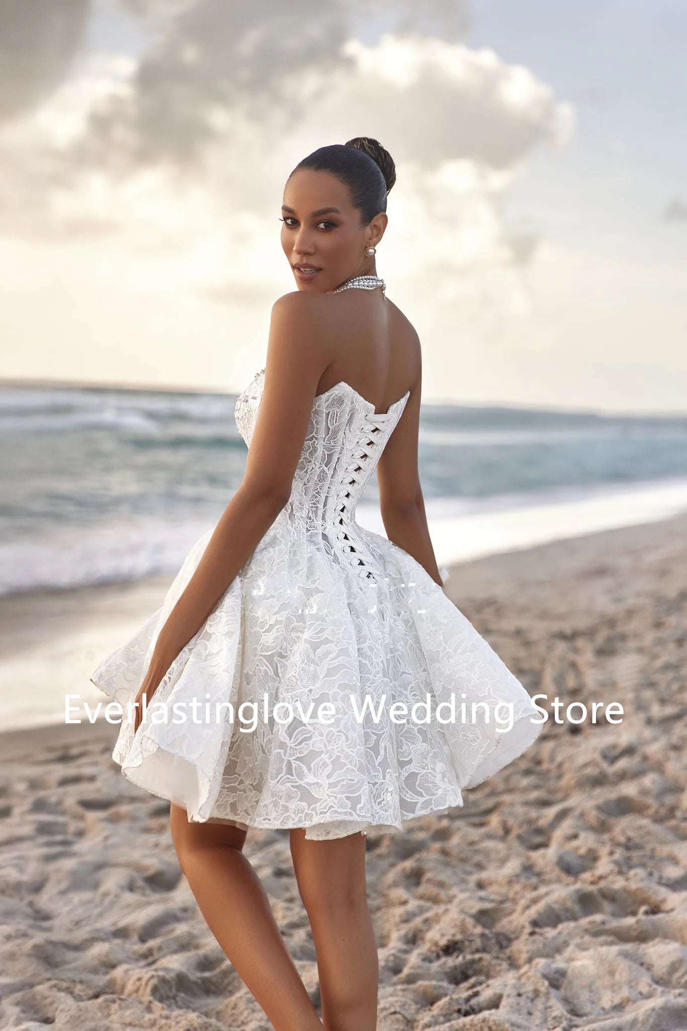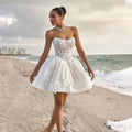 Affordable Short Lace Wedding Dress - Scoop Neck, Full Lace Design, Ruffled Hem - Perfect for Casual Weddings