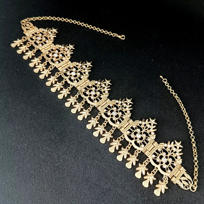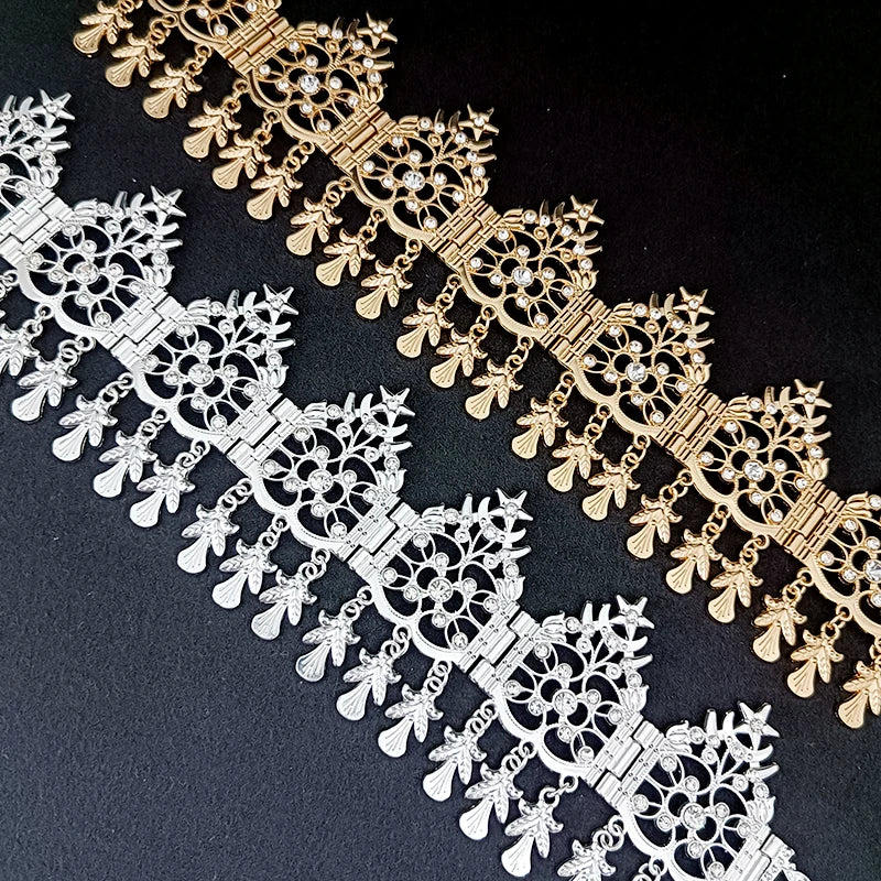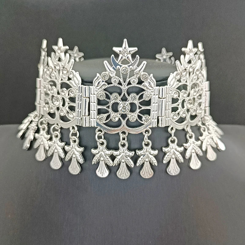 Algerian Bridal Hair Jewelry Metal Water Drop Crystal Hair Chain Star Moon Shape Arab Lady Prom Headgear Gold Color Silver Color