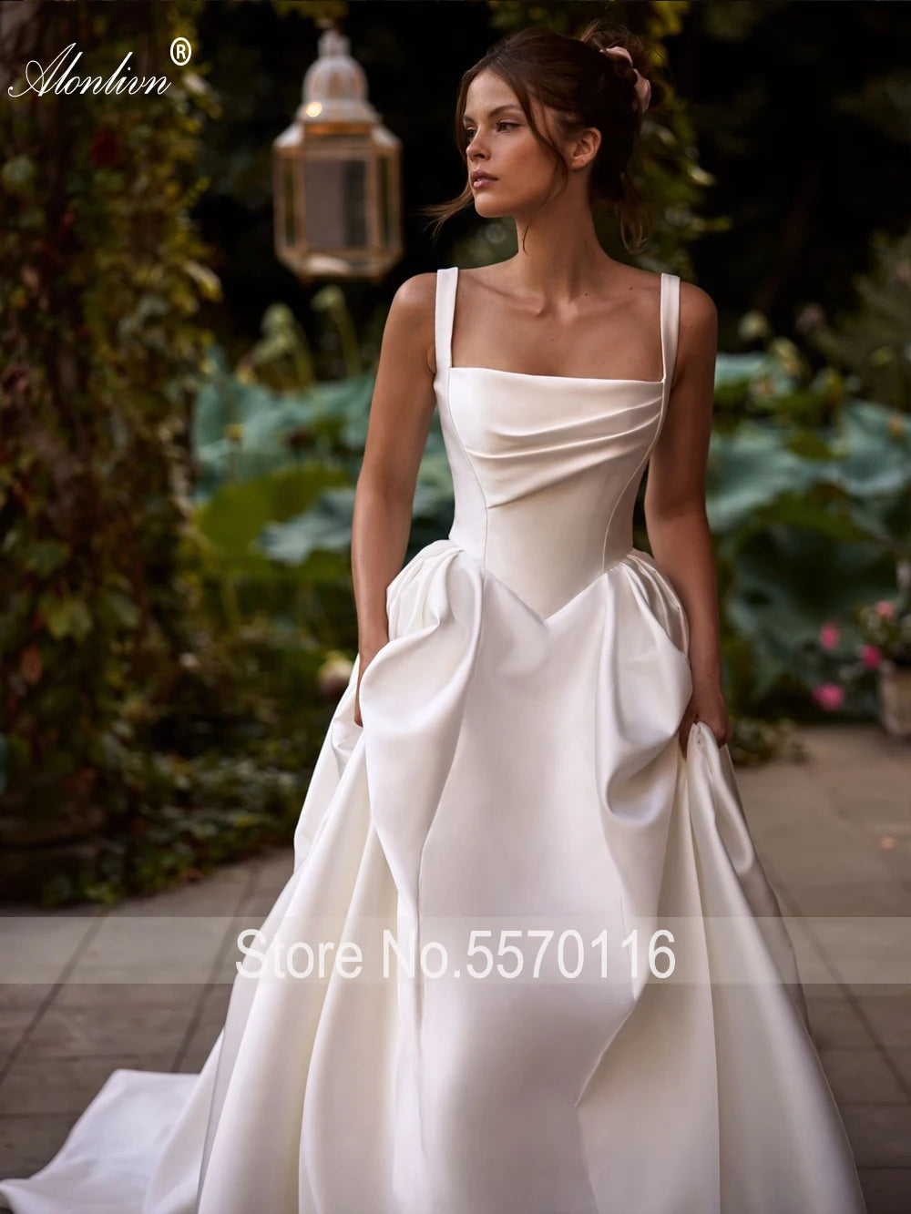 Alonlivn Custom Made Gorgeous Satin Spaghetti Straps Ball Gown Wedding Dresses With Delicated Pleats For Princess Bridal Gowns