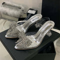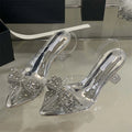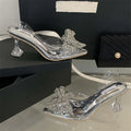 Aneikeh Sexy Pointed Toe Bow Crystal PVC Transparent Women Slingbacks Pumps Elegant Thin High Heels Strippers Prom Mule Shoes