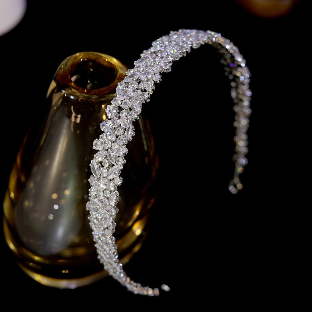 ASNORA Luxury CZ Headbands Silver Color Bridal Crowns Elegant Headwear Wedding Hair Accessories Party Jewelry Bridesmaid Gift