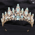 Baroque Gold Color Champagne Water Drop Flower Crystal Opal Tiaras For Women Headband Bride Party Elegant Crown Hair Accessories