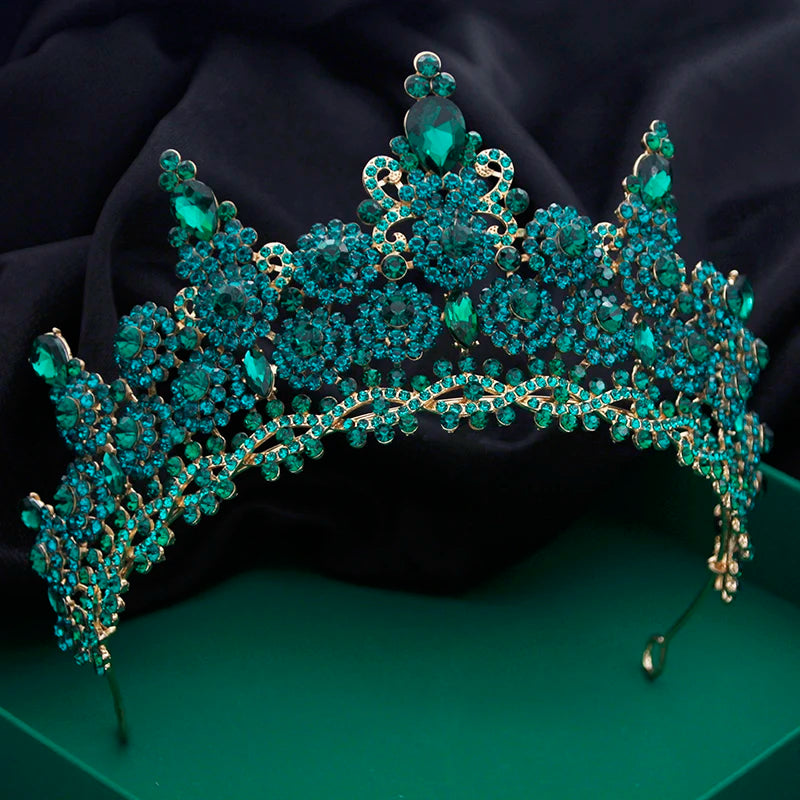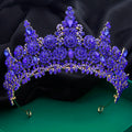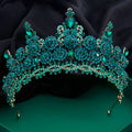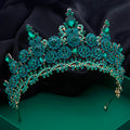Baroque Rose Flower Tiaras and Crowns Green Rhinestone Diadem for Bridal Princess Wedding Hair Jewelry Party Head Accessories