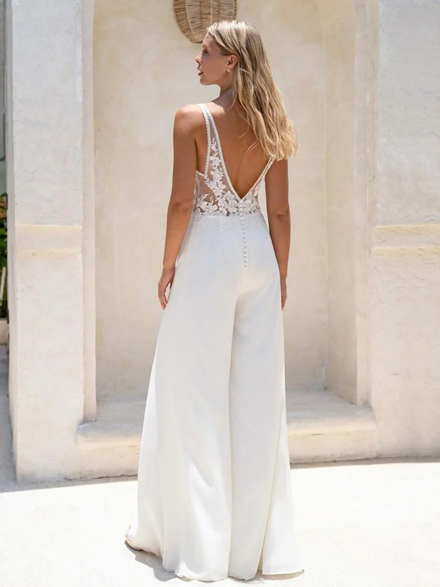 Beach Jumpsuit Pants Wedding Dress For Women Boho Sleeveless Open Back White lace Ivory Custom Made Robe De Mariage