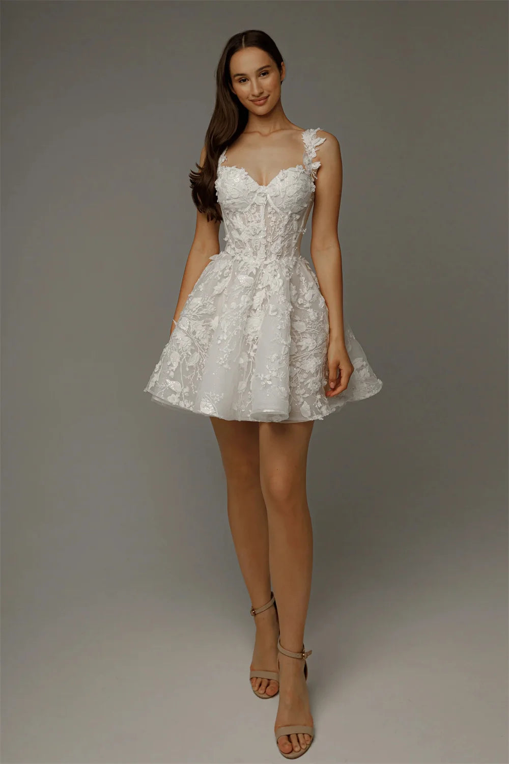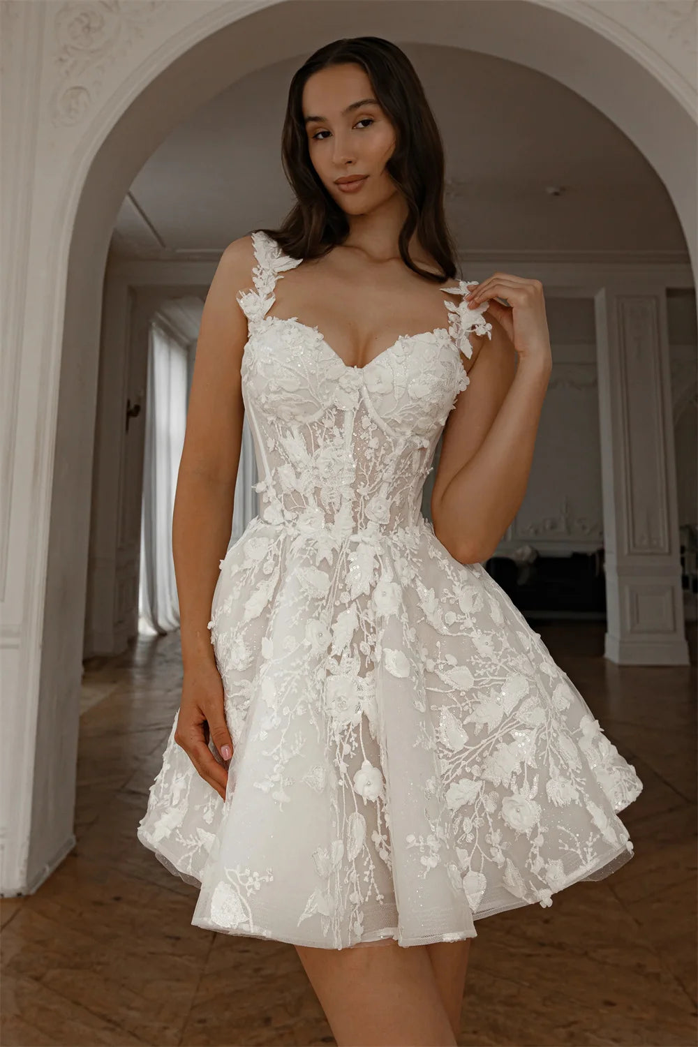 Beautiful Two Straps Sweethat Full 3d Flower Lace Appllque Short/Mini Wedding Dresses Custom Made Bridal Grown Vestido De Noival