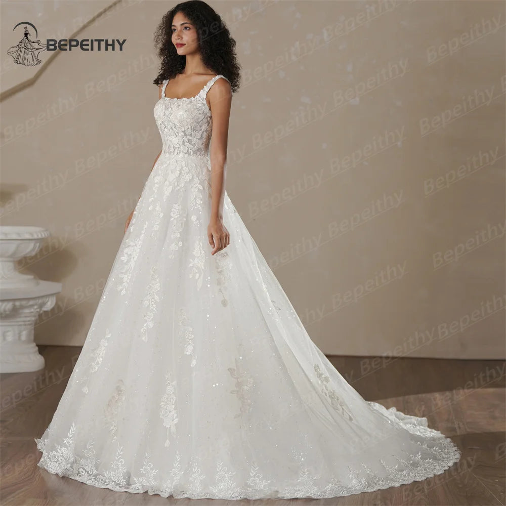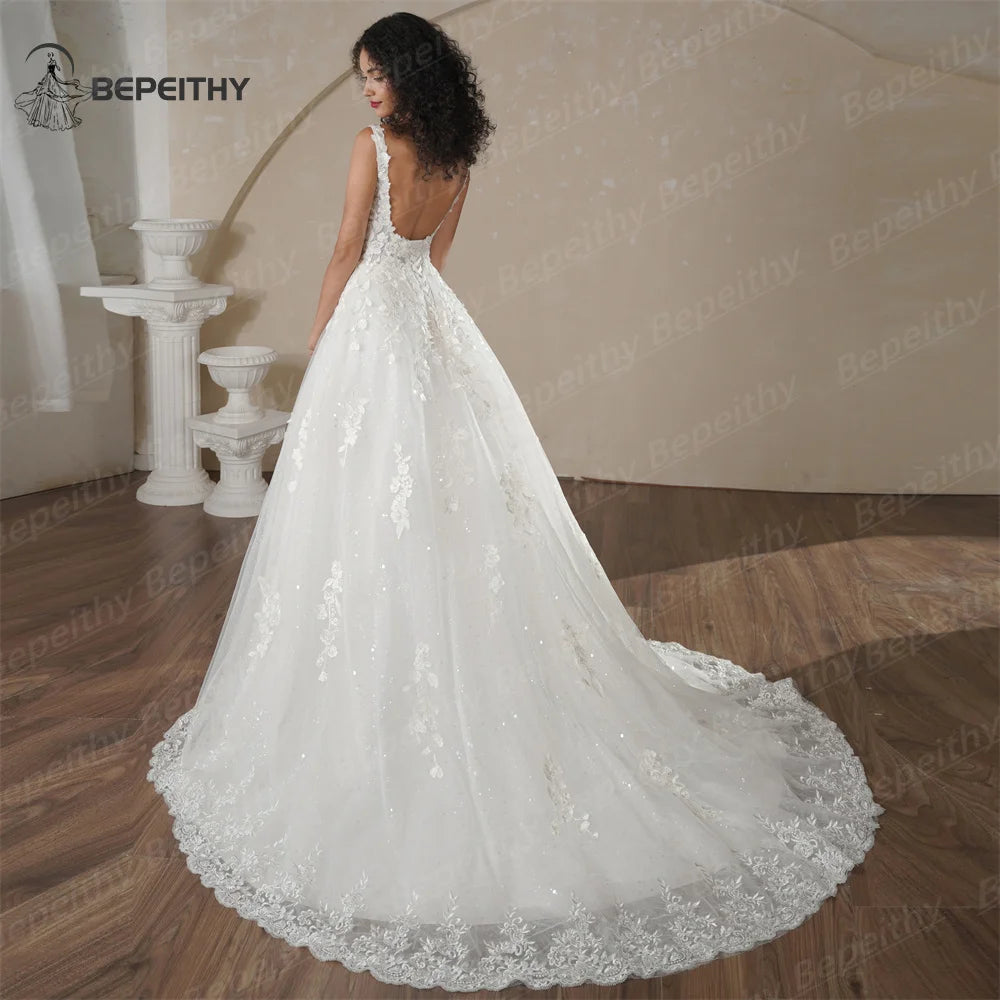 BEPEITHY Customized Beach Lace Wedding Dresses 2025 For Women Backless A Line Court Train Sexy Sleeveless Bride Boho Bridal Gown