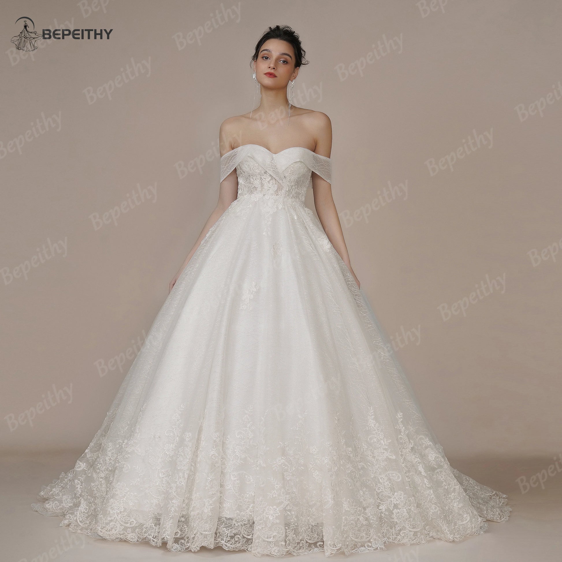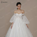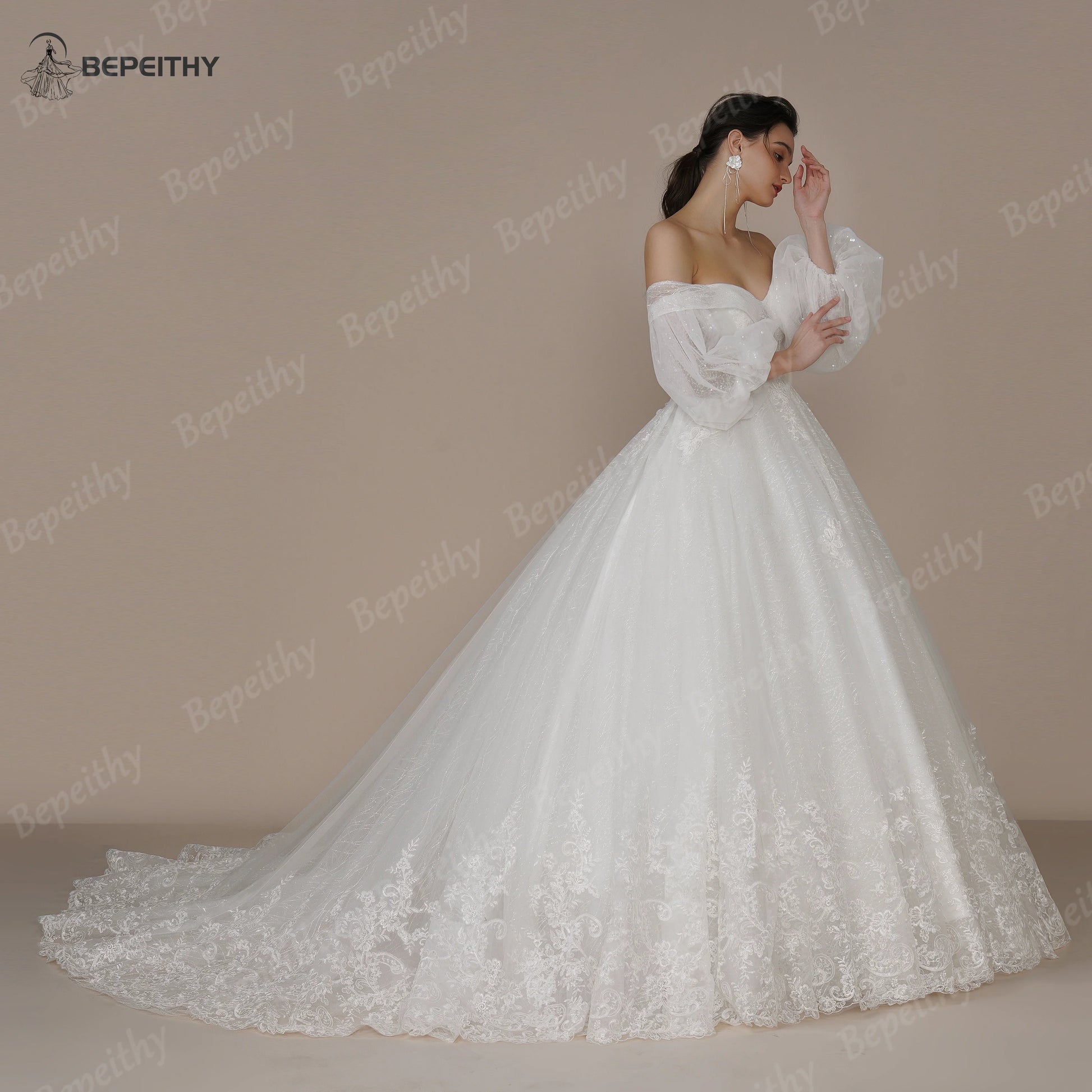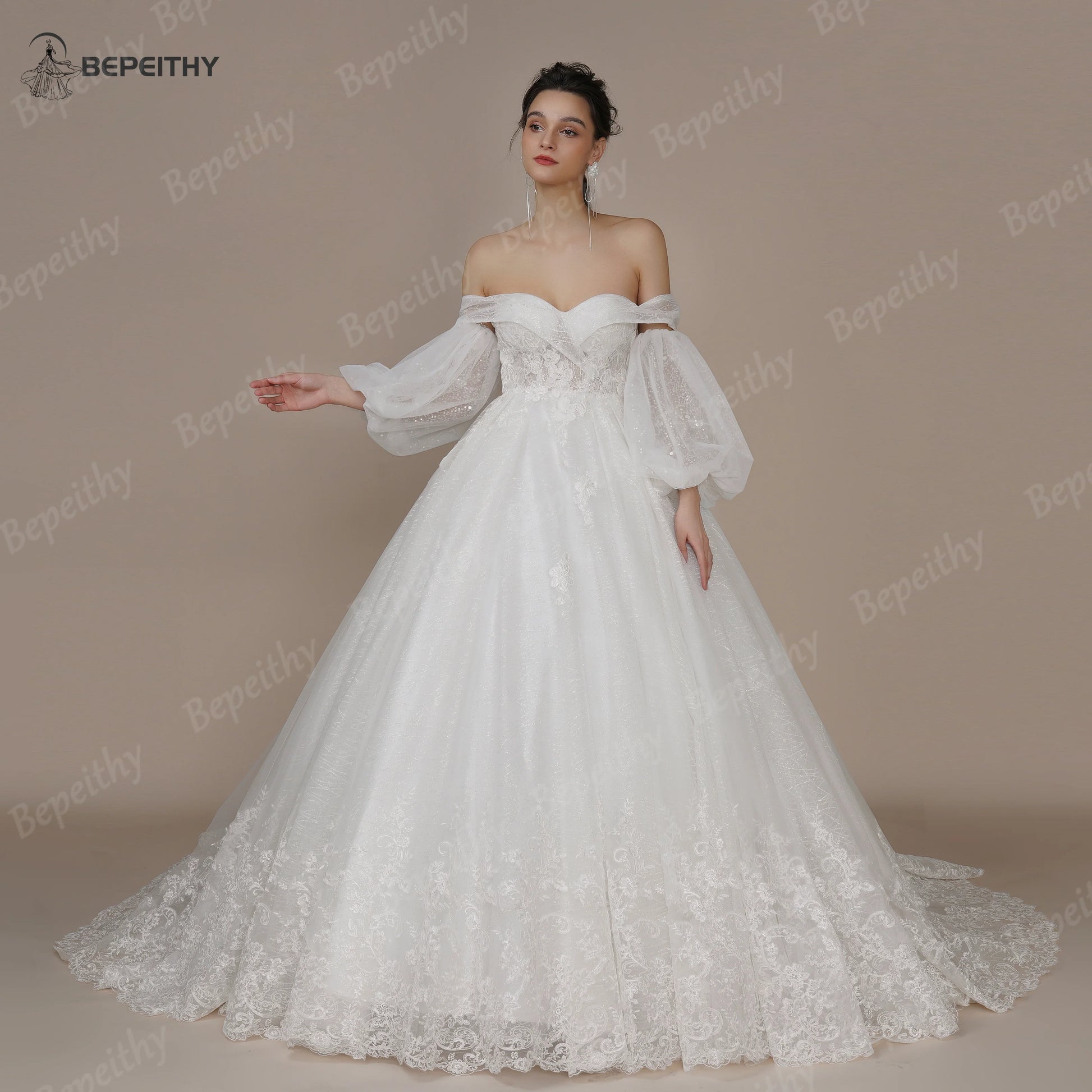 BEPEITHY Customized Princess Vintage Wedding Dress For Women Strapless Court Train Detachable Sleeves Glittle Bridal Ball Gown