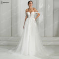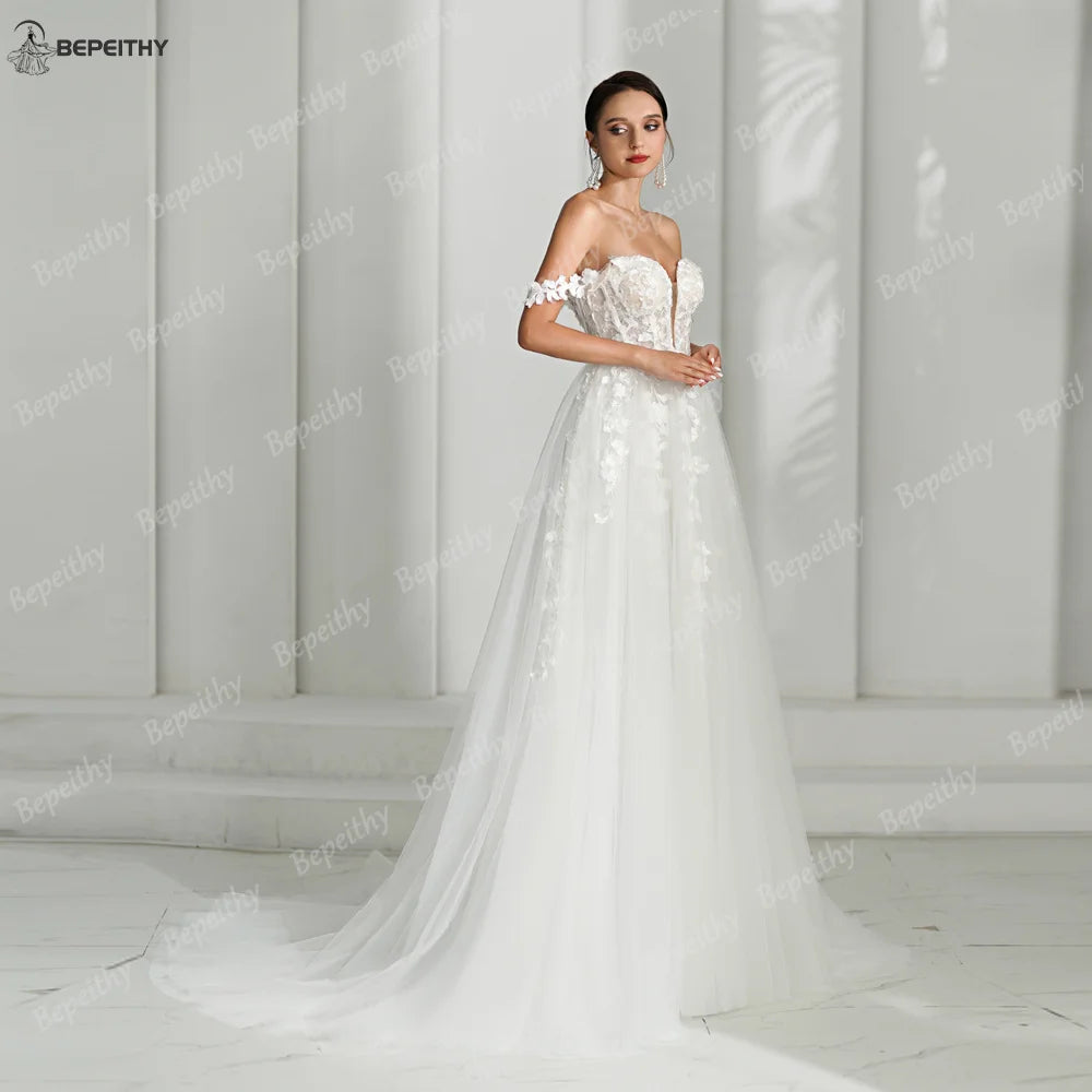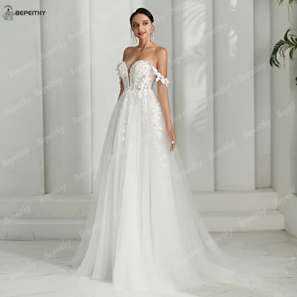 BEPEITHY Customized V Neck A Line Wedding Dresses For Women 2024 Spring Lace Off Shoulder Bride Bridal Gown Vestidos De Novias