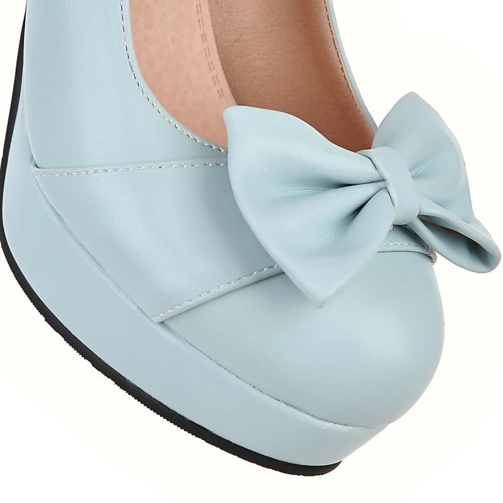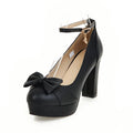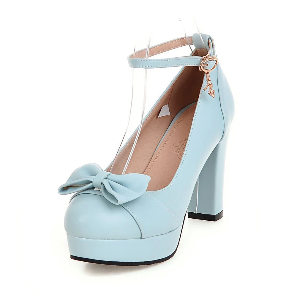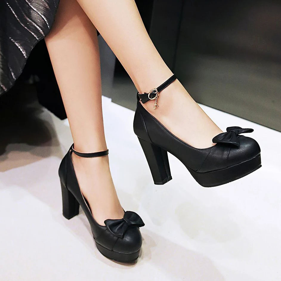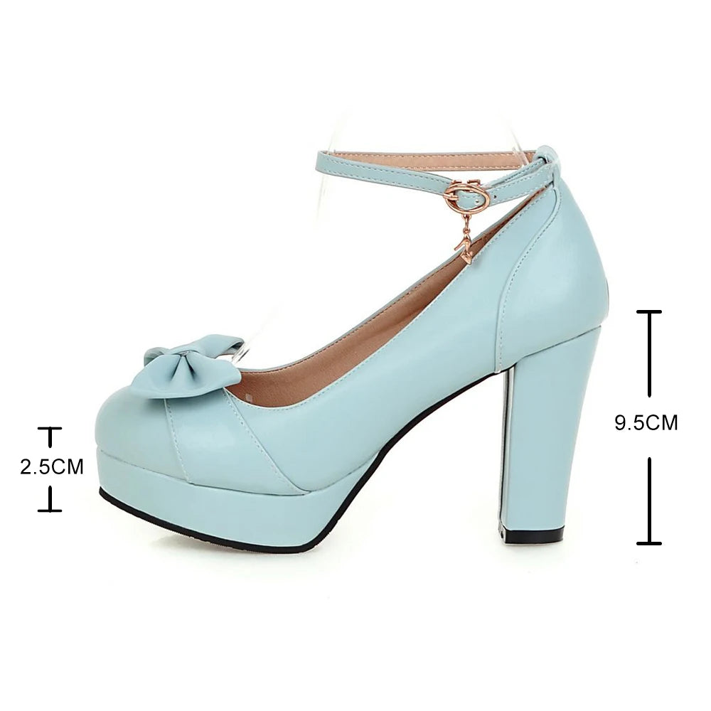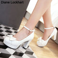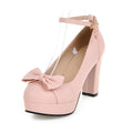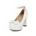 Big Size 41 Women Sweet Bow Heels Female Ankle strap High Heel Shoes Platform Bottom White Pink Pumps Woman Dress Wedding Shoes