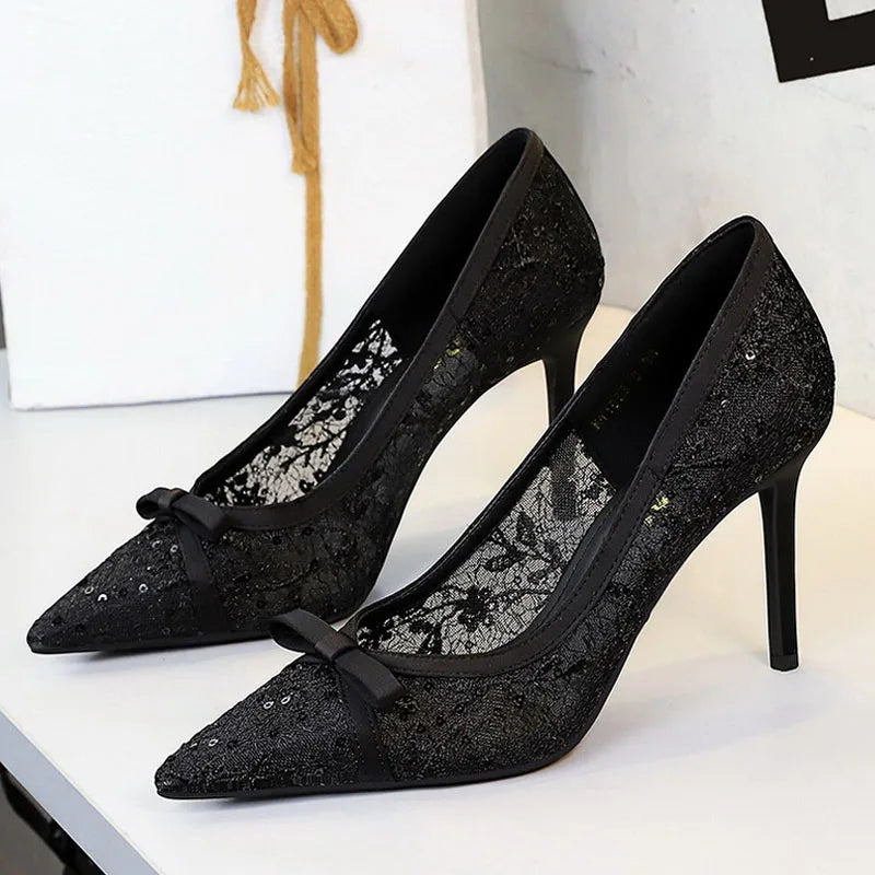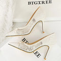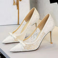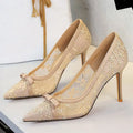 BIGTREE Spring Mesh CRYSTAL Butterfly knot Pumps Womens Pointed Toe Thin Heels Elegant Wedding Party Stripper Shoes