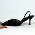 Black Mesh Embroidery Women Pumps Sexy Pointed Toe String Bead High Heels Summer Elegant Party Designer Shoes Heeled Sandals