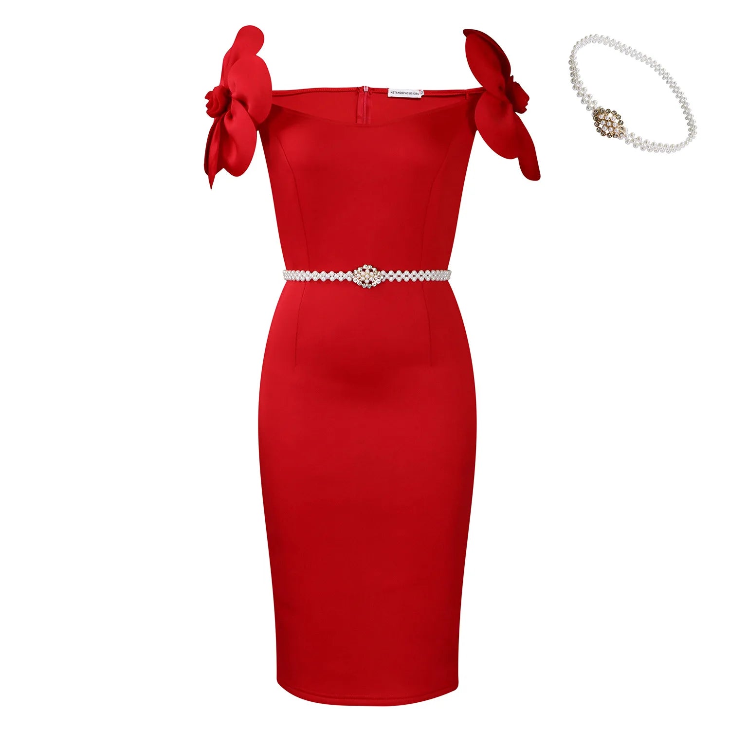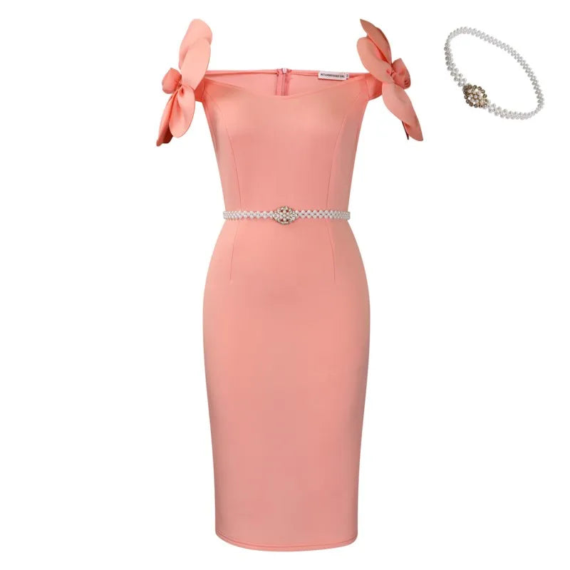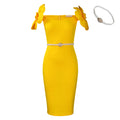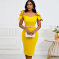 Bodycon party Dresses Package Hip Evening Dress Slim Vestidos Solid Color Vestido Flower V-link Elegant Temperament Simple Style