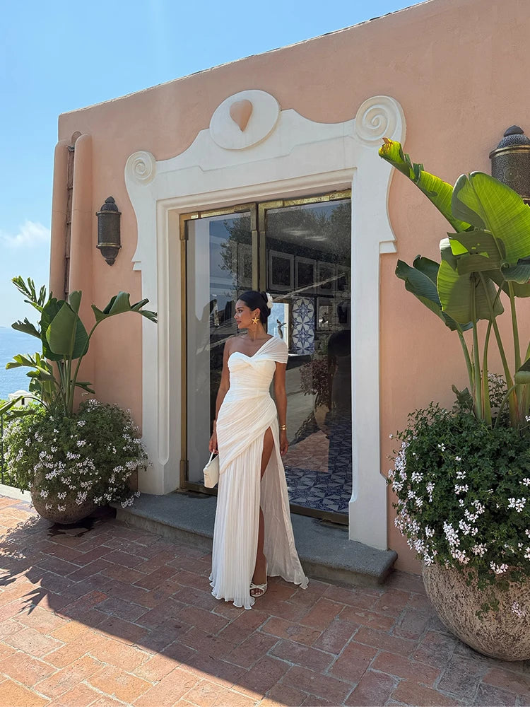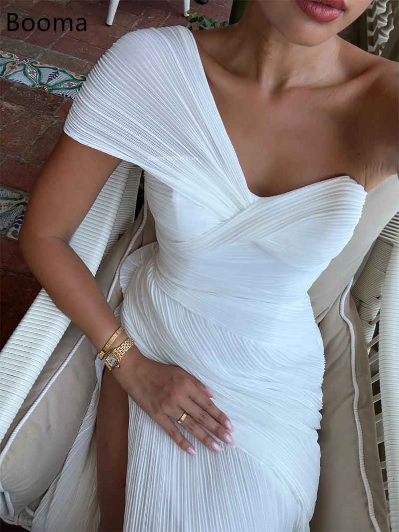 Booma SImple One-Shoulder Mermaid Pleat Wedding Dresses Long Sleeveless Side Split Elegant Brides Gown Custom Made 2025
