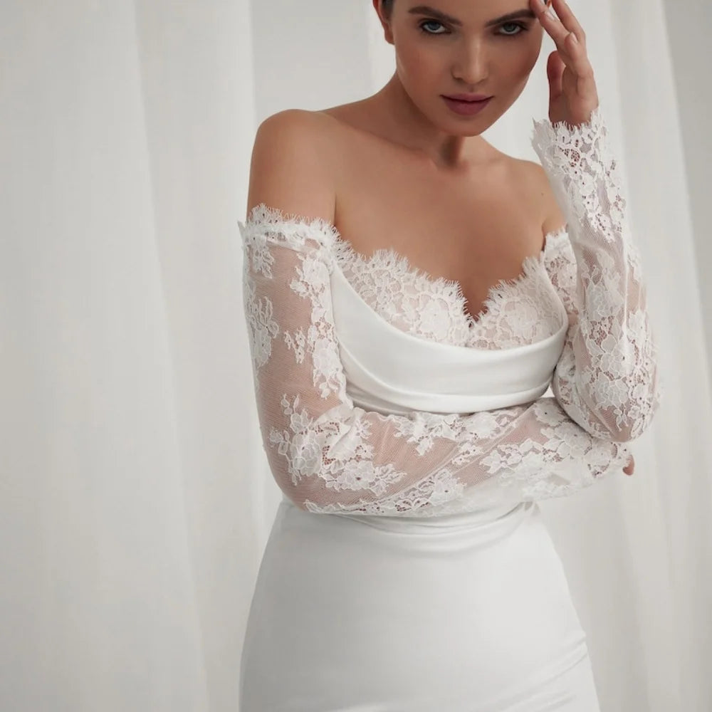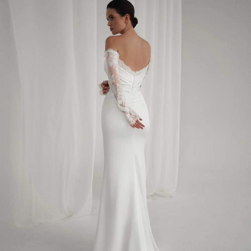 Cathy White Flowers Emulationsilk Wedding Dresses Long Sleeves vestidos de noche Off the Shoulder Customized Formal Evening 2024