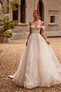Charming Off The Shoulder 3D Flower Lace Applique A Line Wedding Dresses Custom Made 2025 Rode De Morrie