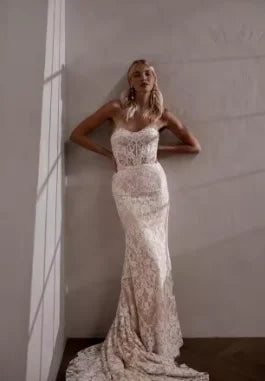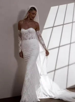 Charming Removeable Sleeves Sweethart Full Lace Mermaid Wedding Dresses Sweep Trian Custom Made Bridal Grown Vestido De Noival