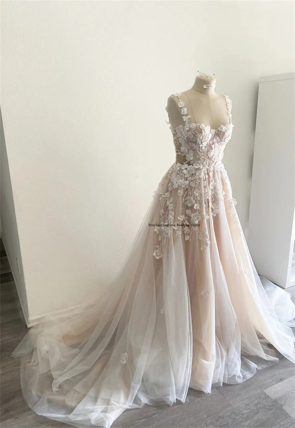 Charming Two Straps 3D Fliwer Lace Applique Bridal Grown A Line Wedding Dresses Custom Made 2025 Vestido De Noival